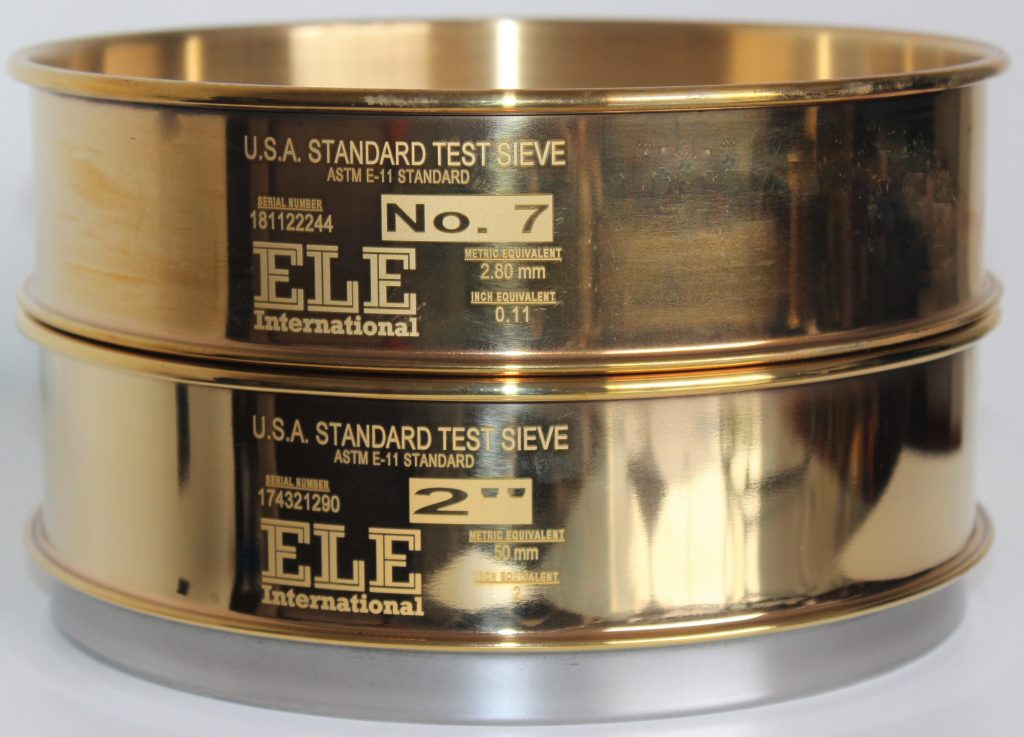 Cada tamiz, debe contar con una placa de identificación que indica el número de tamiz, la designación equivalente de la Escala Tyler, la norma que cumple y el número de serie del certificado de conformidad.